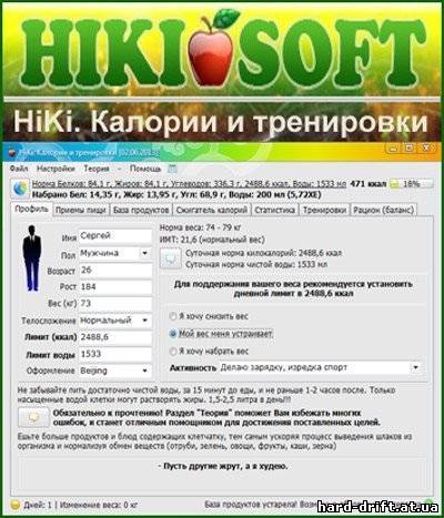 [center][] [/][/center] HiKi. Калории и тренировки - многоцелевая система, позволяющая следить за питанием и оставаться в форме. Согласитесь, что половина Вашего успеха зависит от правильного и сбалансированного питания. А вторая половина - кроется в системном подходе к упражнениям и тренировкам. Поэтому так важно иметь возможность контролировать эти аспекты своей жизни. Категория: PROGRAMS [ПРОГРАММЫ]