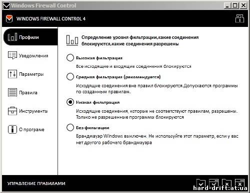 [center][] [/][/center] Windows Firewall Control — программа располагается в системном трее и дает возможность эффективно управлять различными параметрами при помощи контекстного меню, например можно быстро разрешить/запретить другим программам выходить в сеть, настраивать правила, просматривать текущие активные сетевые соединения, импортировать/экспортировать политики и т.д. Категория: PROGRAMS [ПРОГРАММЫ]