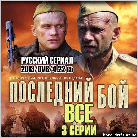 [center][]  [/][/center] Сериал «Последний бой» – четыре истории о четырех солдатах Великой Отечественной, тех, кто дошел до Берлина и принял участие в последних сражениях против фашистской Германии.